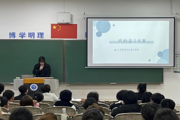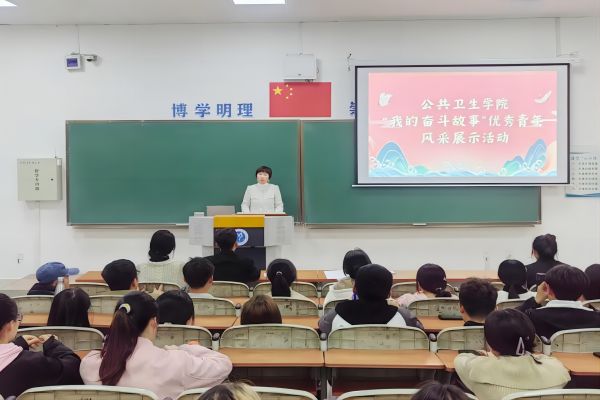 为充分发挥优秀青年学生的示范引领作用,引导学生树立奋斗成就人生的价值观念,以饱满的精神状态迎接本科教育教学审核评估。公共卫生学院团总支于10月14日晚,在实验楼207教室开展“我的奋斗故事”优秀青年风采展示活动。团总支副书记乌兰图雅出席活动。2019级—2023级预防医学专业和康复治疗学专业13名学生担任分享者,百余名学生到场聆听。