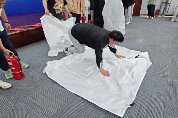 在培训中,杨岩岩副院长以“科学实验、安全为先”为主题,围绕实验室安全事故案例警示教育、实验室安全基础知识、实验室安全守则和各类实验室突发事故应急处置四个方面,结合学院实际为师生进行详细讲解。同时,观看了洗眼器、喷淋装置、灭火器、灭火毯等设备设施的使用方法及突发火灾如何正确逃生宣传片。各班级学生代表现场进行灭火器和灭火毯的使用实操练习。最后,参会全体师生进行突发火灾逃生演练。
