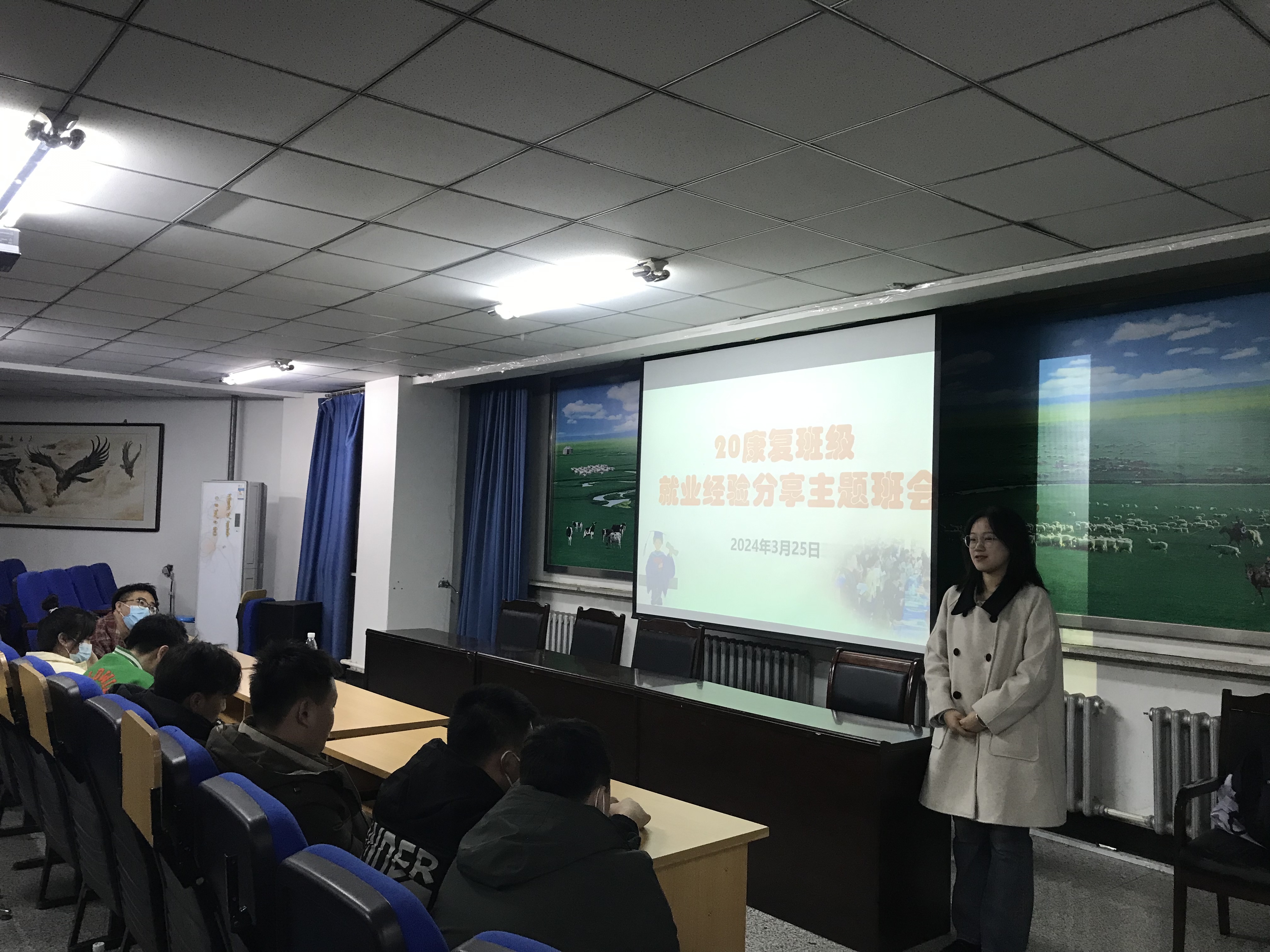 为进一步提高康复治疗学专业毕业生高质量就业,加强对毕业生的就业服务。3月25日晚,公共卫生学院康复治疗学系主任、2020级康复治疗学班班主任张程波在医学楼201会议室主持召开促进就业主题班会。通辽市内、外实习的2020级康复治疗学班全体毕业生线上线下同步参加会议。