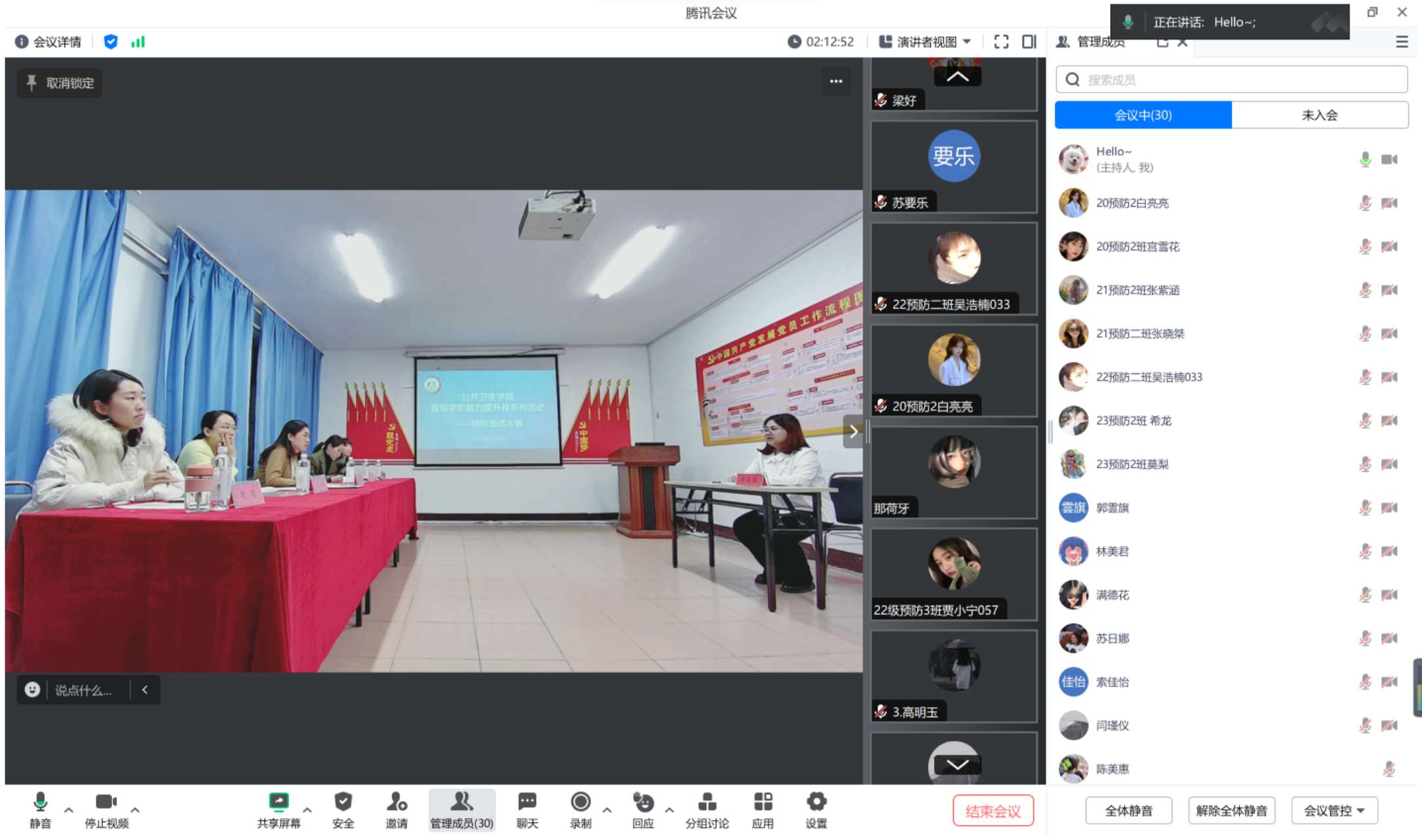11位选手分别参加事业单位、公务员面试、企业面试、研究生复试模拟面试三个赛道。大赛标准还原了结构化、半结构化、研究生复试面试场景,现场严肃,过程严谨,保证了比赛的公平公正性。选手们准备充分,特别在研究生复试模拟面试赛道,同学们在英语翻译与听力过程中,表现出的速度、准确度展现了我院学子在英语学习方面的水平。比赛全程直播,线上观众能够同步观看面试现场。经过角逐,2019级预防专业易洋洋同学,以从容的表现、流畅的表达和答题精准度赢得了考官们认可获得第一名。