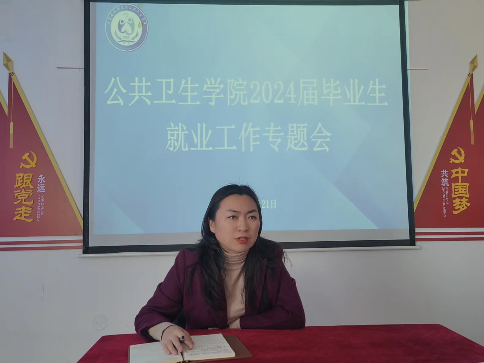 为全力推进2024届毕业生就业工作,提高毕业生就业质量。3月21日下午,公共卫生学院在致远楼602会议室召开2024届毕业生就业工作专题会,学院党委书记尚丹、院长张国威、副院长杨岩岩、副院长白雪(毕业班班主任)、预防医学系主任张有为、康复治疗学系主任张程波(毕业班班主任)、毕业班辅导员参加会议。会议由尚丹书记主持。