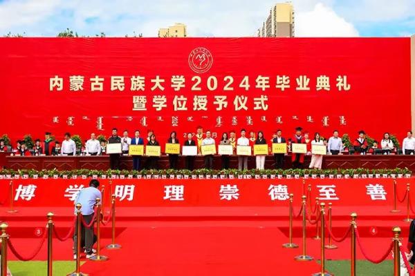 6月24日,内蒙古民族大学2024年毕业典礼暨学位授予仪式在霍林河校区体育场隆重举行。