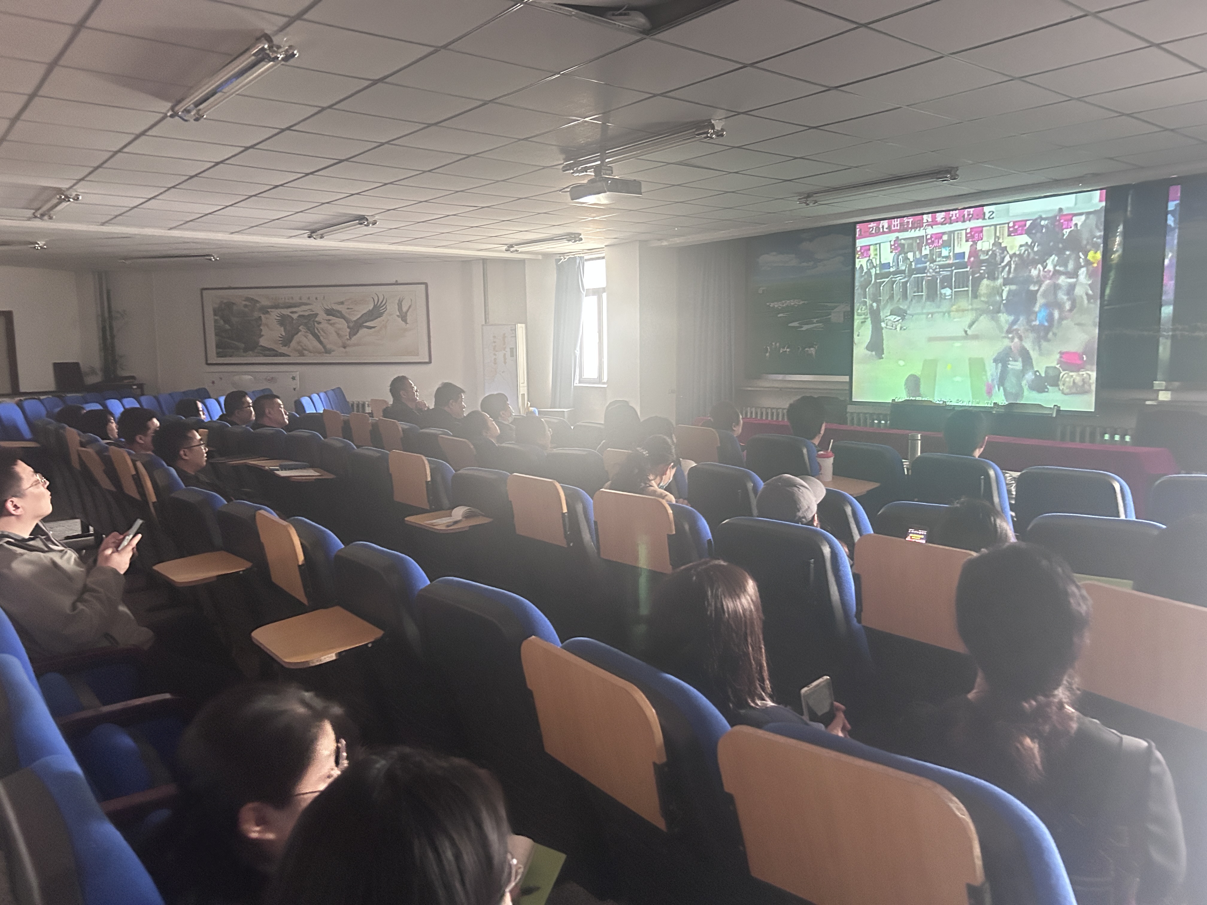 会后,全院教职工共同观看《反恐怖普法进校园》(高校版)宣传教育片。