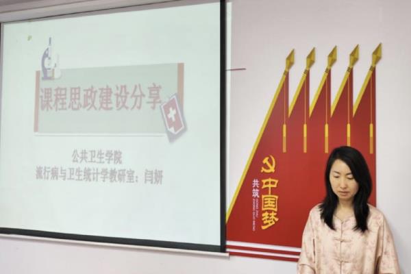 为深入推进学院课程思政建设,加强教师间课程思政建设经验分享与交流。5月29日下午,公共卫生学院在致远楼602会议室举办课程思政建设分享交流会。流行病与卫生统计学教研室主任闫妍担任主讲,全体教师参加。会议由副院长杨岩岩主持。