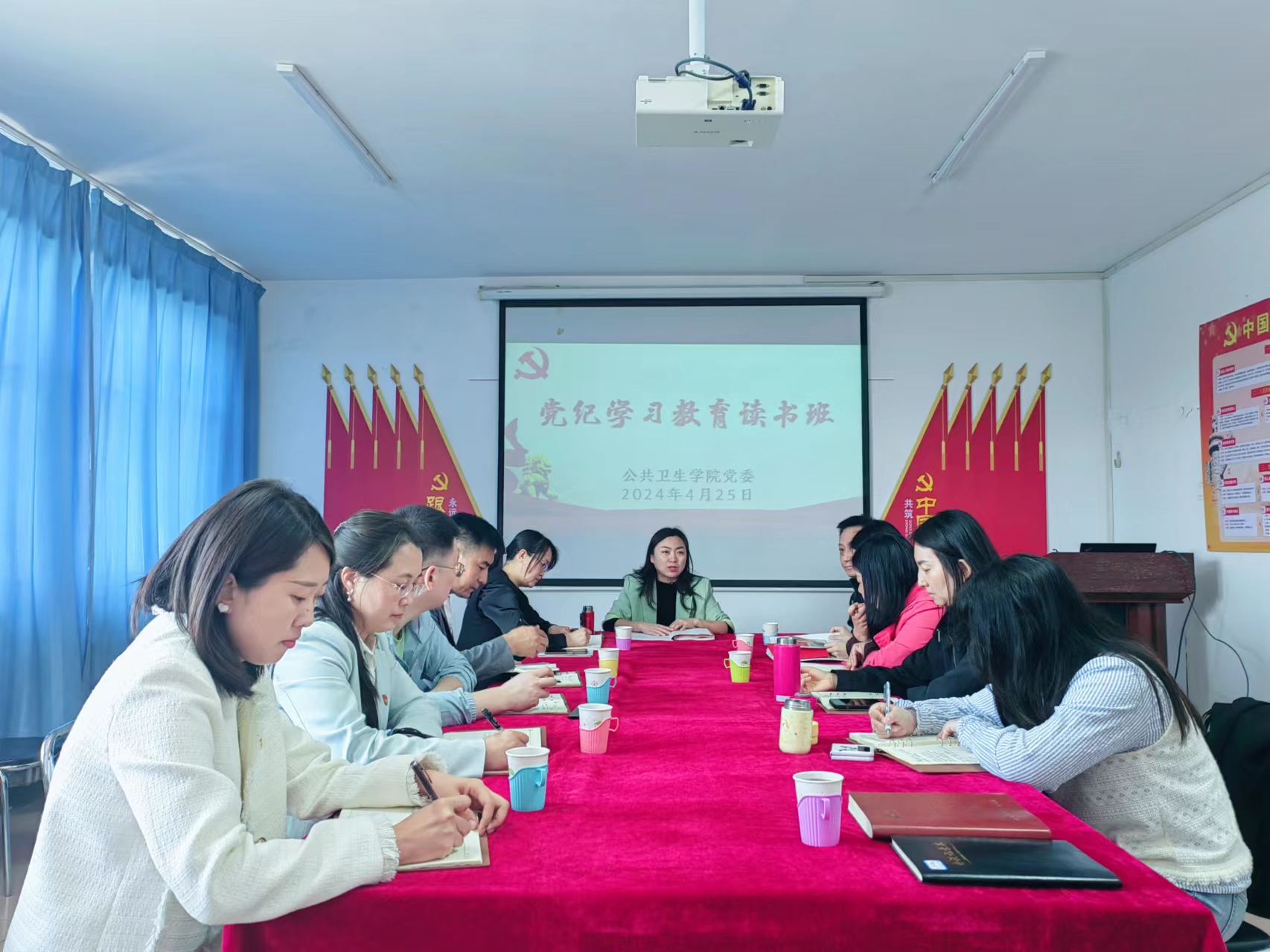 4月25日上午,公共卫生学院党委在致远楼602会议室举办党纪学习教育读书班暨理论学习中心组(扩大)第3次集体学习。读书班由学院党委书记尚丹主持。学院中心组成员以及教工党员参加。