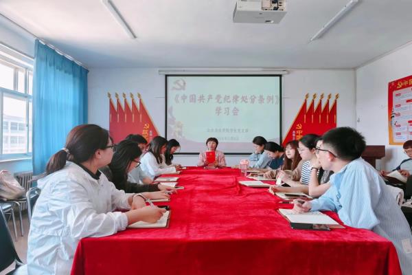 会上,学生党员李文娜、李欣悦、张天祺、孙嘉、黄勇、高都兰、隋佳欢、李铭璇、冯云鹏、苏日娜、苏日雅等人逐条领学《中国共产党纪律处分条例》第一编总则部分。与会人员针对所学内容进行了讨论。