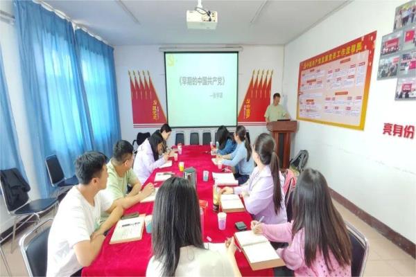 白雪副院长结合内蒙古自治区发展过程中的历史事件,领学了“六句话”的事实和道理中的第一句话:内蒙古地区是中国共产党最早建立党组织的民族地区。随后,支部宣传委员(兼统战委员)王策、张学富作为主讲人,分别选取《中华民族共同体概论》中“文明初现与中华民族起源”和“早期的中国共产党”两部分内容做了分享。他们通过查阅资料,整理思路为党员教师讲解了史前时期的中国文化发展历程以及中国共产党的创建和发展背景。
